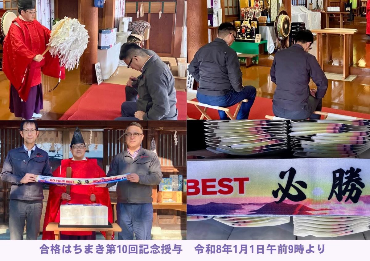 藤島神社様にて、2026年(令和8年)元日に配布する「滑らない合格はちまき」の奉納を行いました。